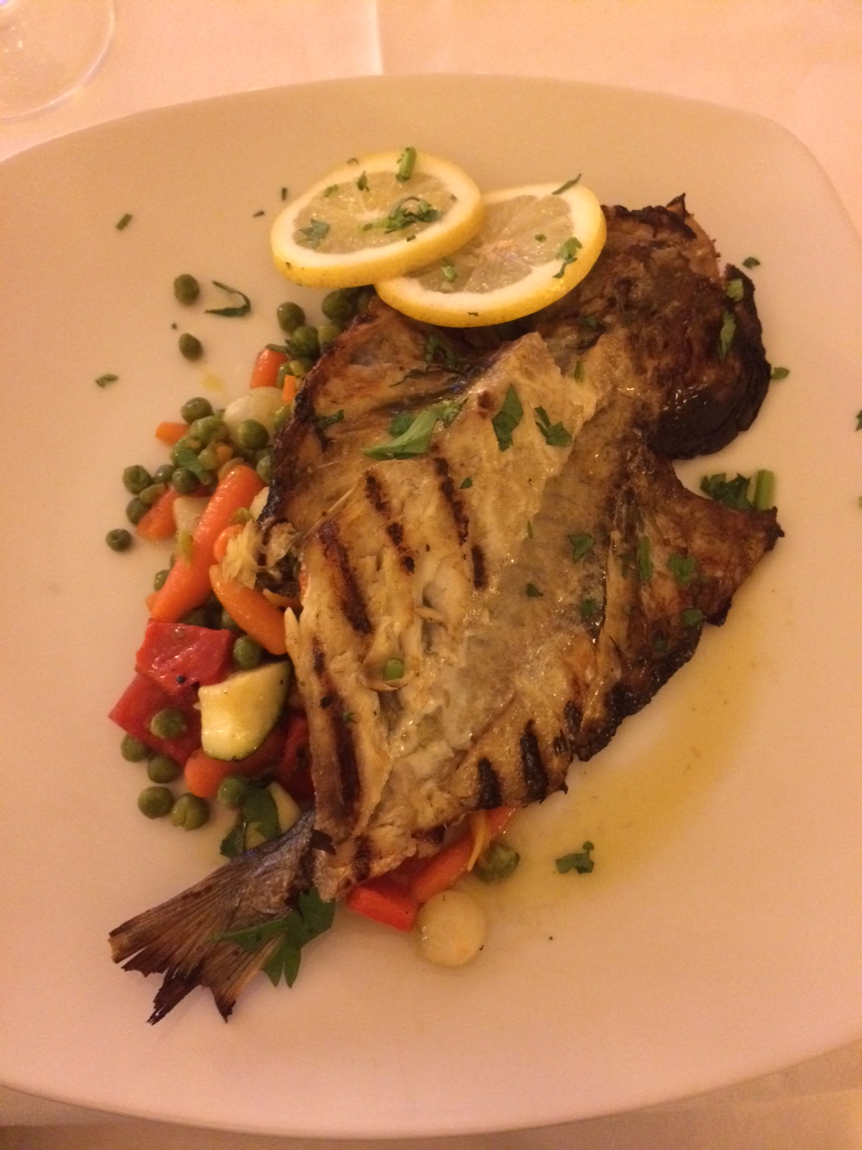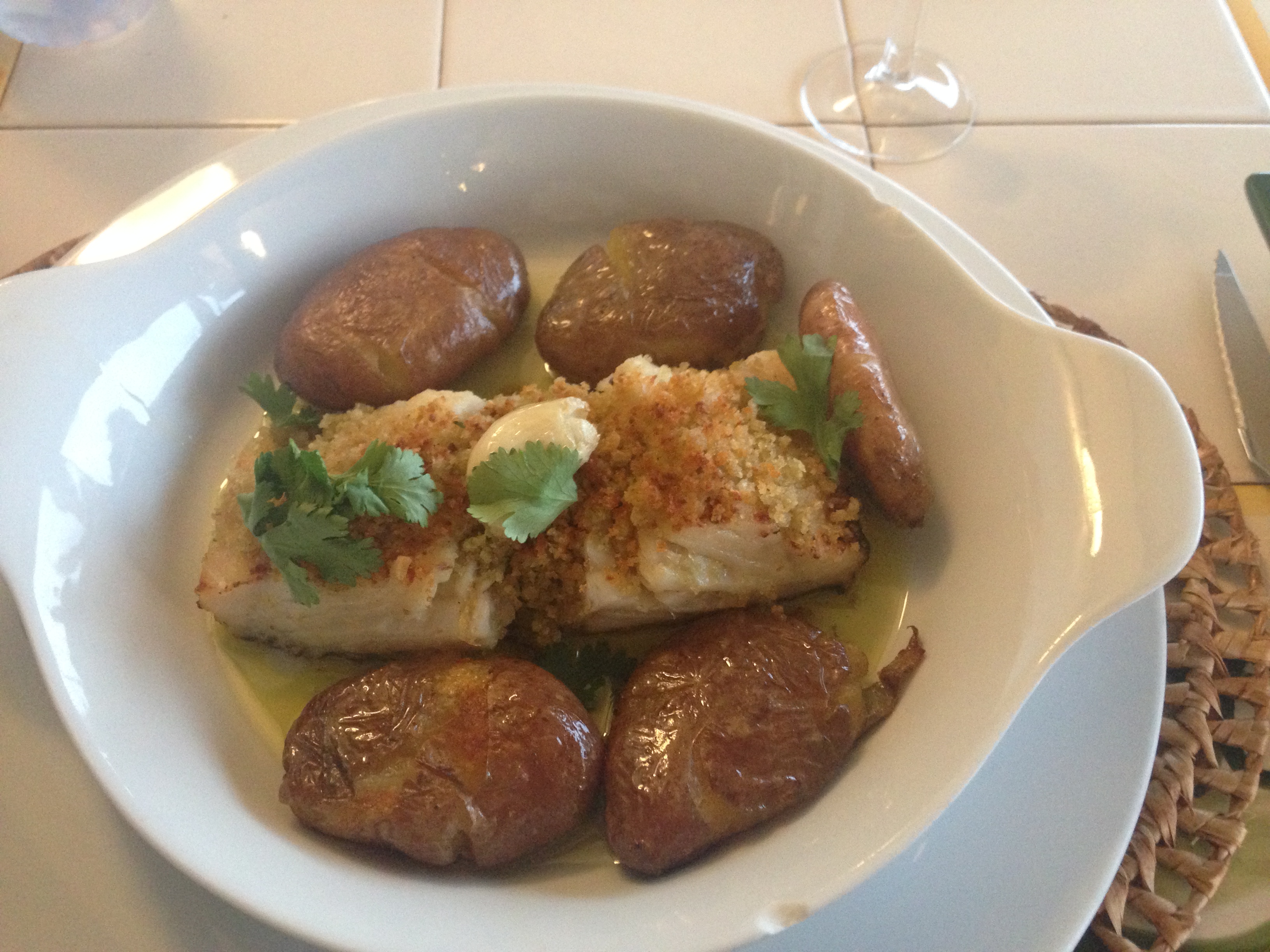We later had a wonderful dinner at Casa da Rocha on the Praia da Rocha. Margaret had Sea Bass with Lemon and Orange and it wa almost like a meal and dessert together. I had Salted Cod in Olive Oil avec New Potatoes. It was quite yummy. I normally don’t take food pictures because that makes you a wanker in my opinion, but several folks requested. This is the view from the restaurant: