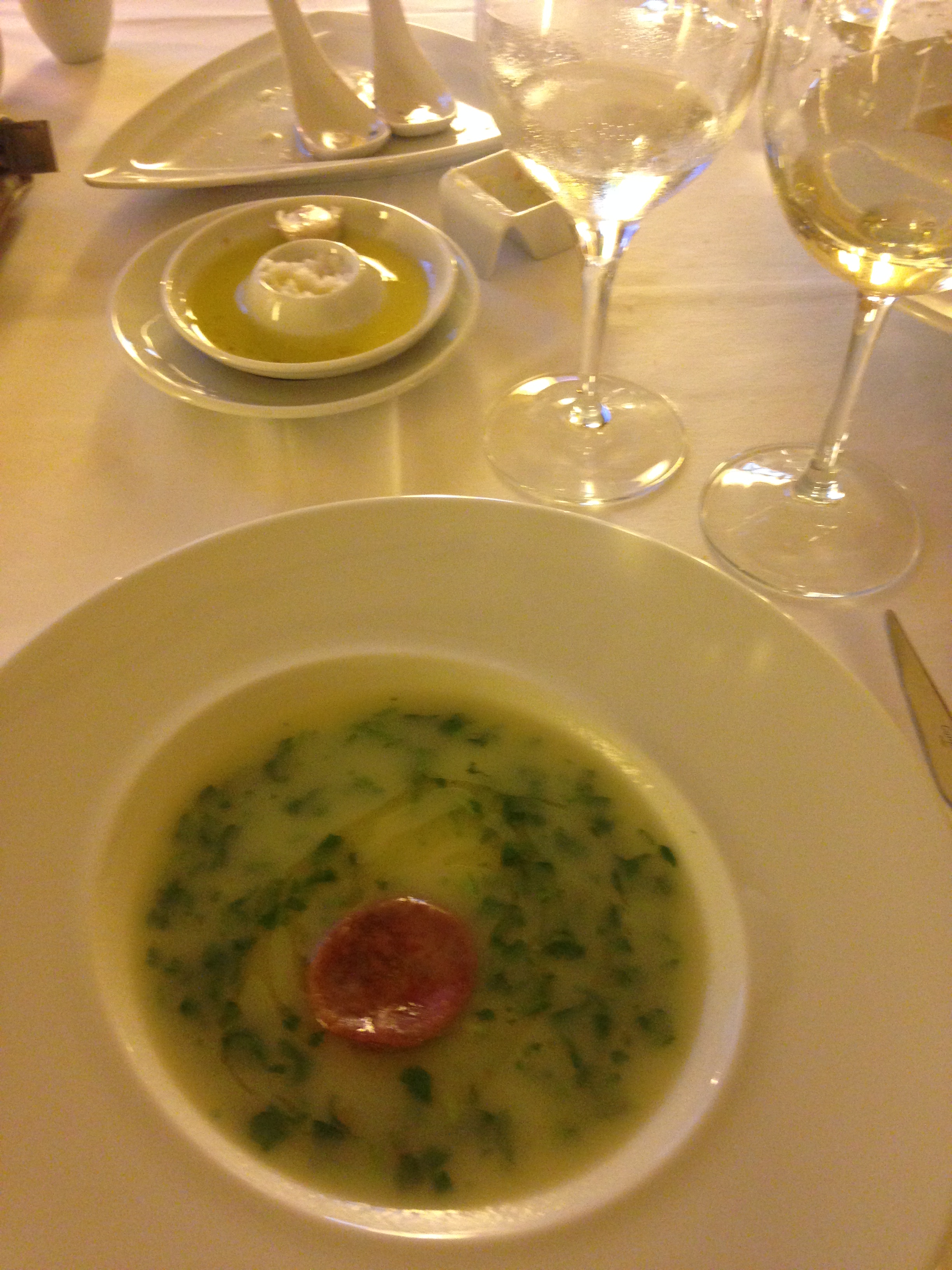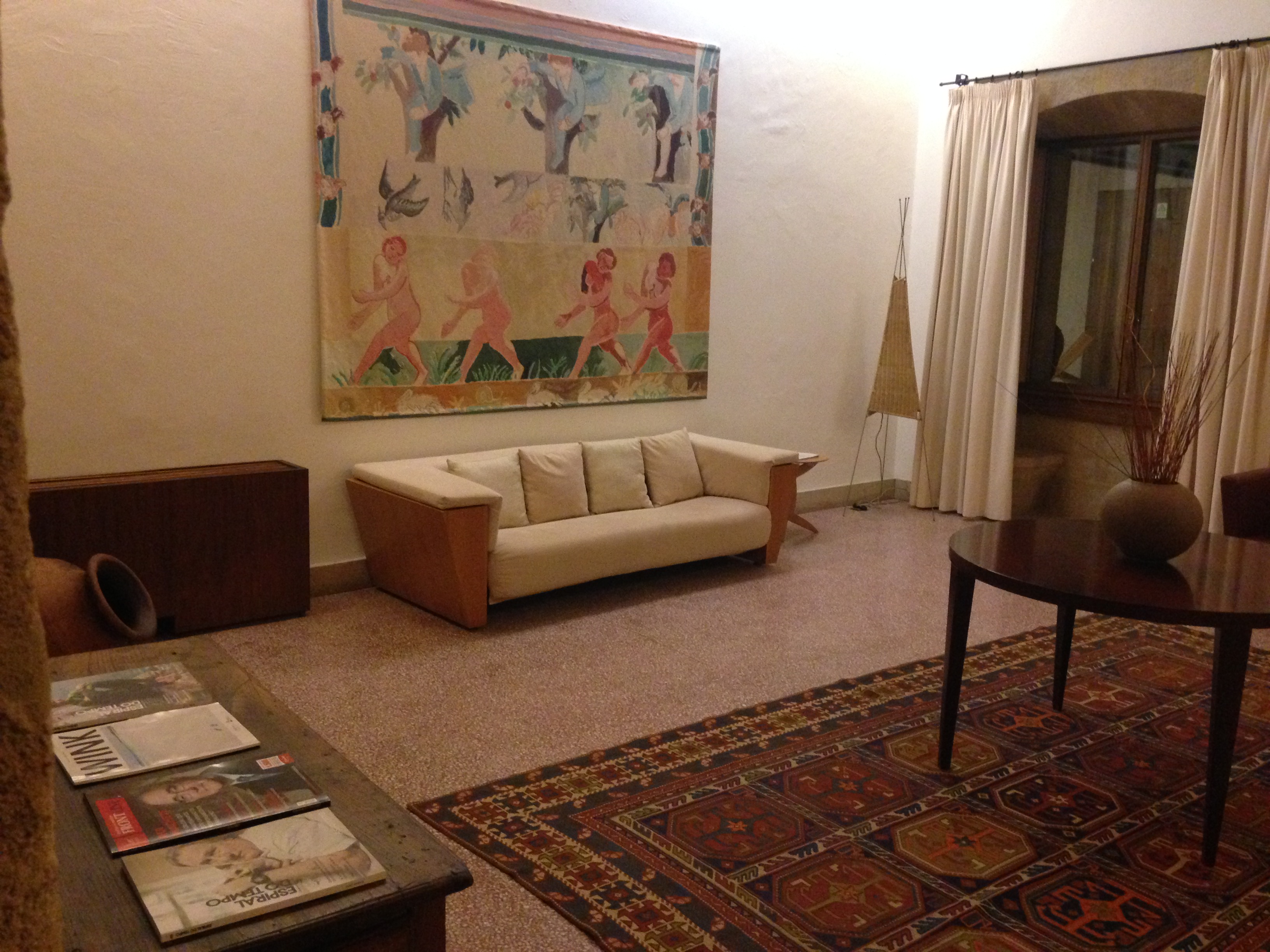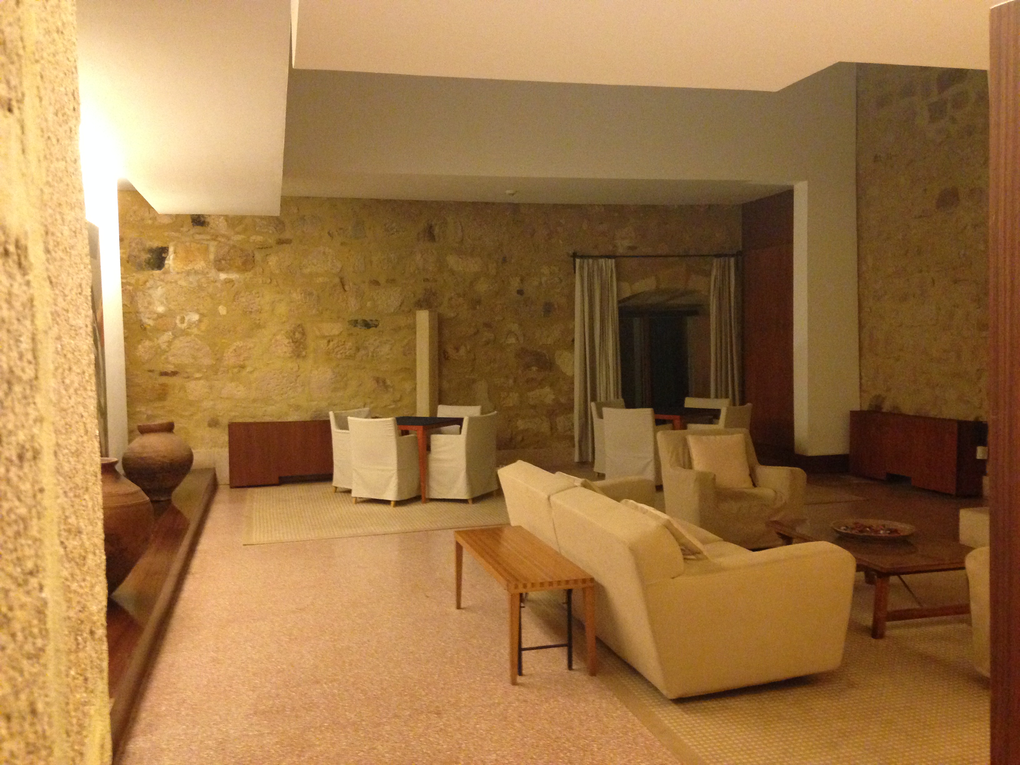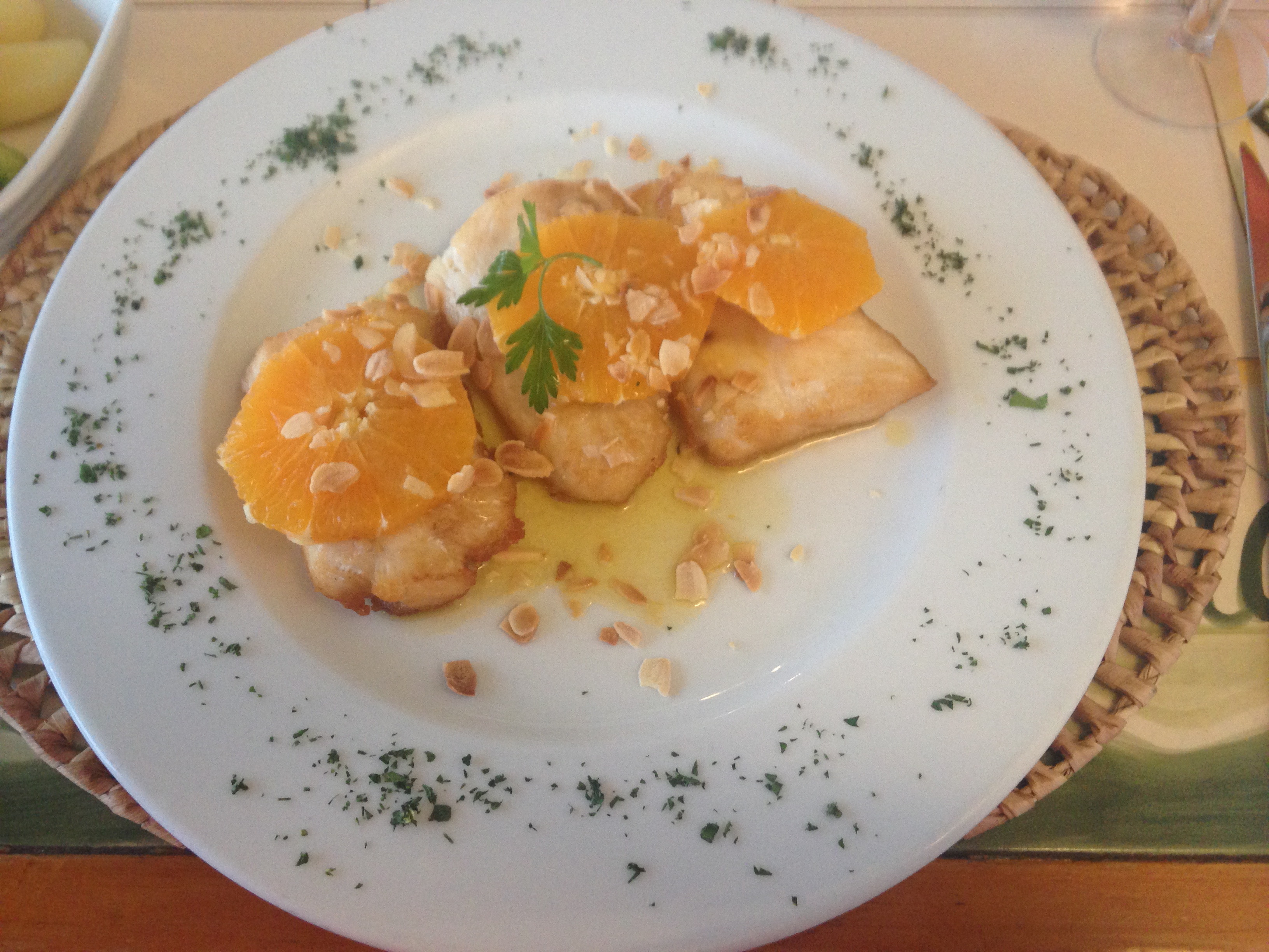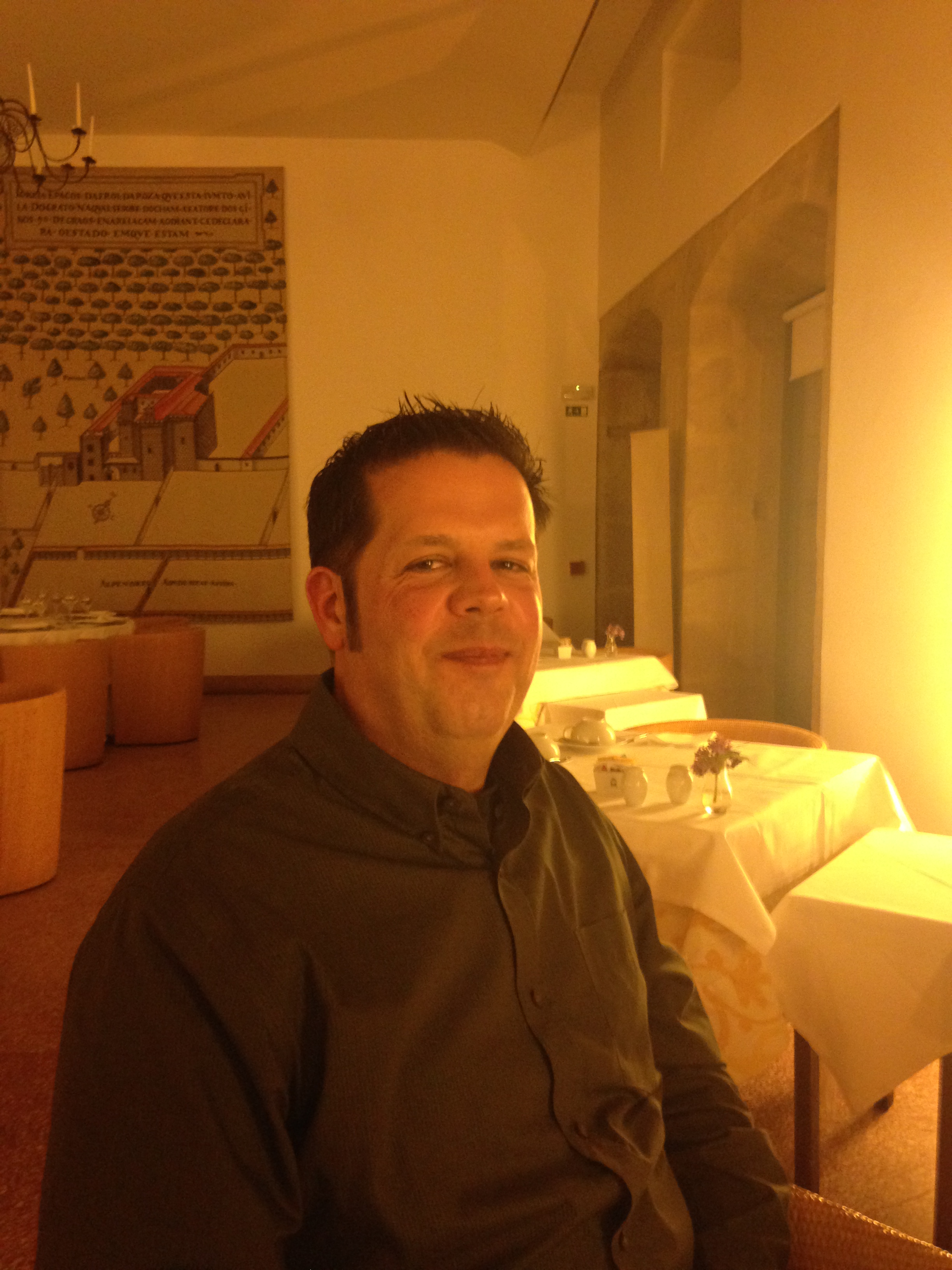 Dinner this eve consisted of Asparagus the size of tree trunks, Bream, the most amazing chicken ever, and a selection of local pastries/fruit – most made with eggs and almonds. Quite tasty. The dining hall is arranged so you get to see the sunset every evening. Our minions are thoughtful.