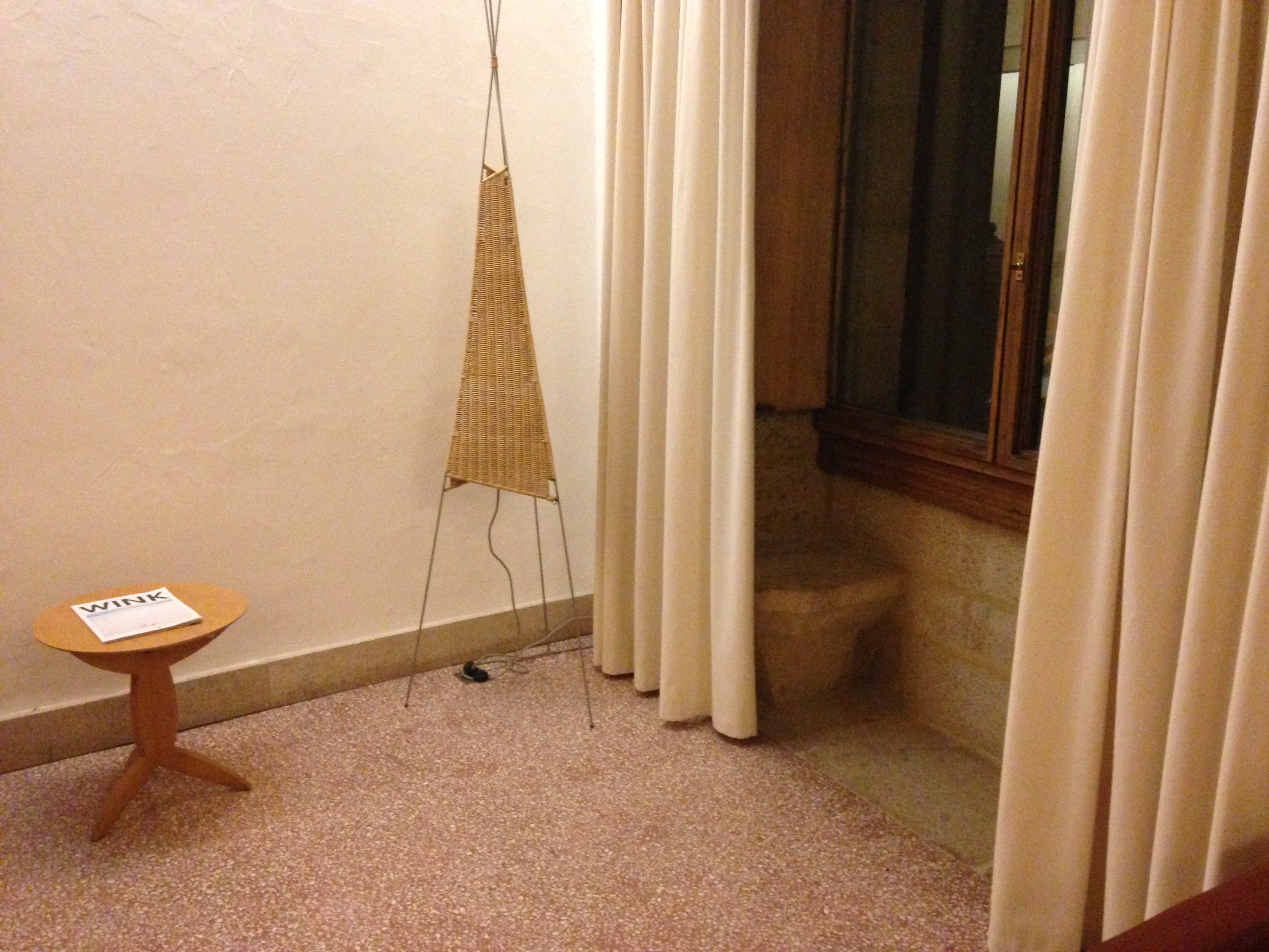 You can either go through the lavatory, or through the bedroom to our balcony where we can take a repose, or perhaps wave to commoners.