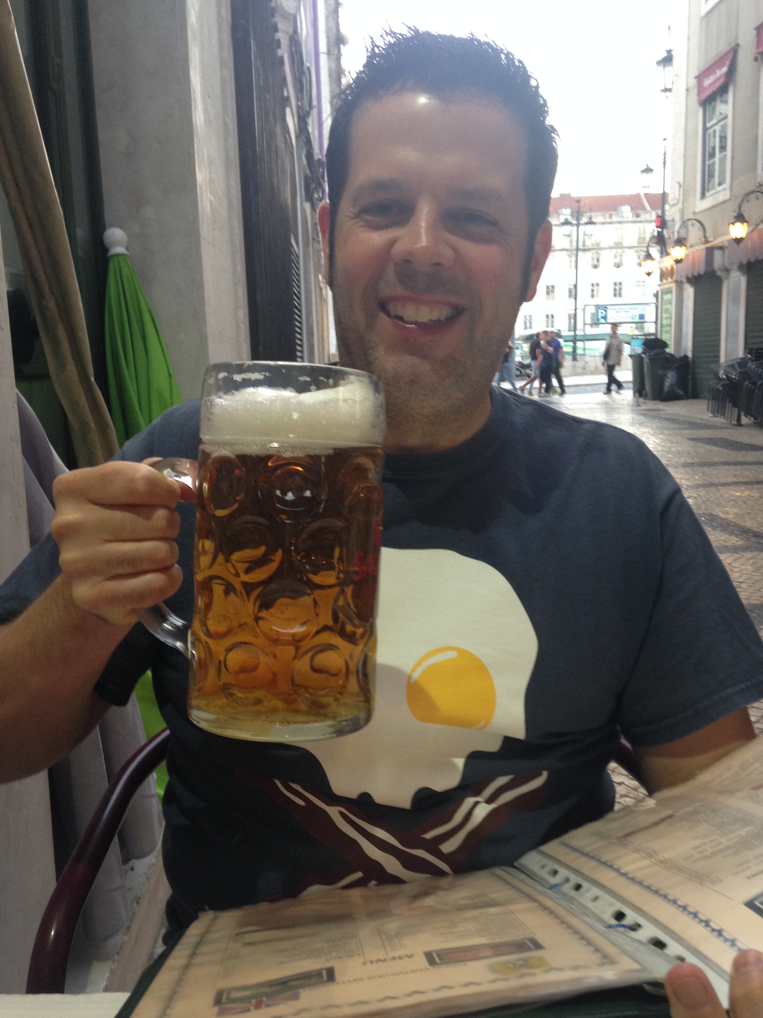 We came back to the apartment and had a brief rest, then went to dinner just down the street. We didn’t get any photos, but Maggie had a traditional fish/shrimp and rice dish, and I had a chicken/sausage and rice dish. They were yummy. When ordering a beer here you usually get the choice of 2 sizes – an Imperial (which is about 10 ounces – and for girly-men), or you can get a Caneca (which is a proper British pint – not that bullshit pint in the U.S. where they give you around 12 ounces or a tinge more.) Anyway, I ordered a “Caneca”, then reiterated large. The server spread his hands apart really far and said “Big?” I said “Yes! Just like that!” Apparently he took me seriously and brought me a liter. So needless to say, he got a good tip.