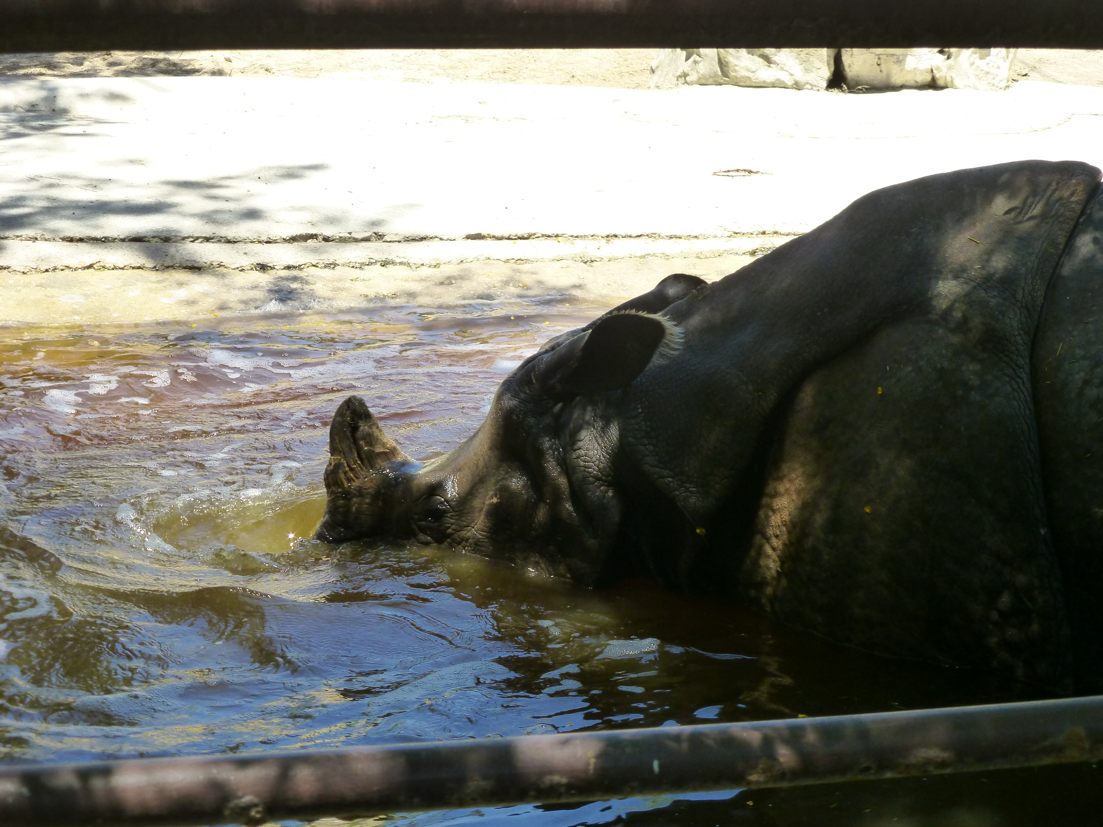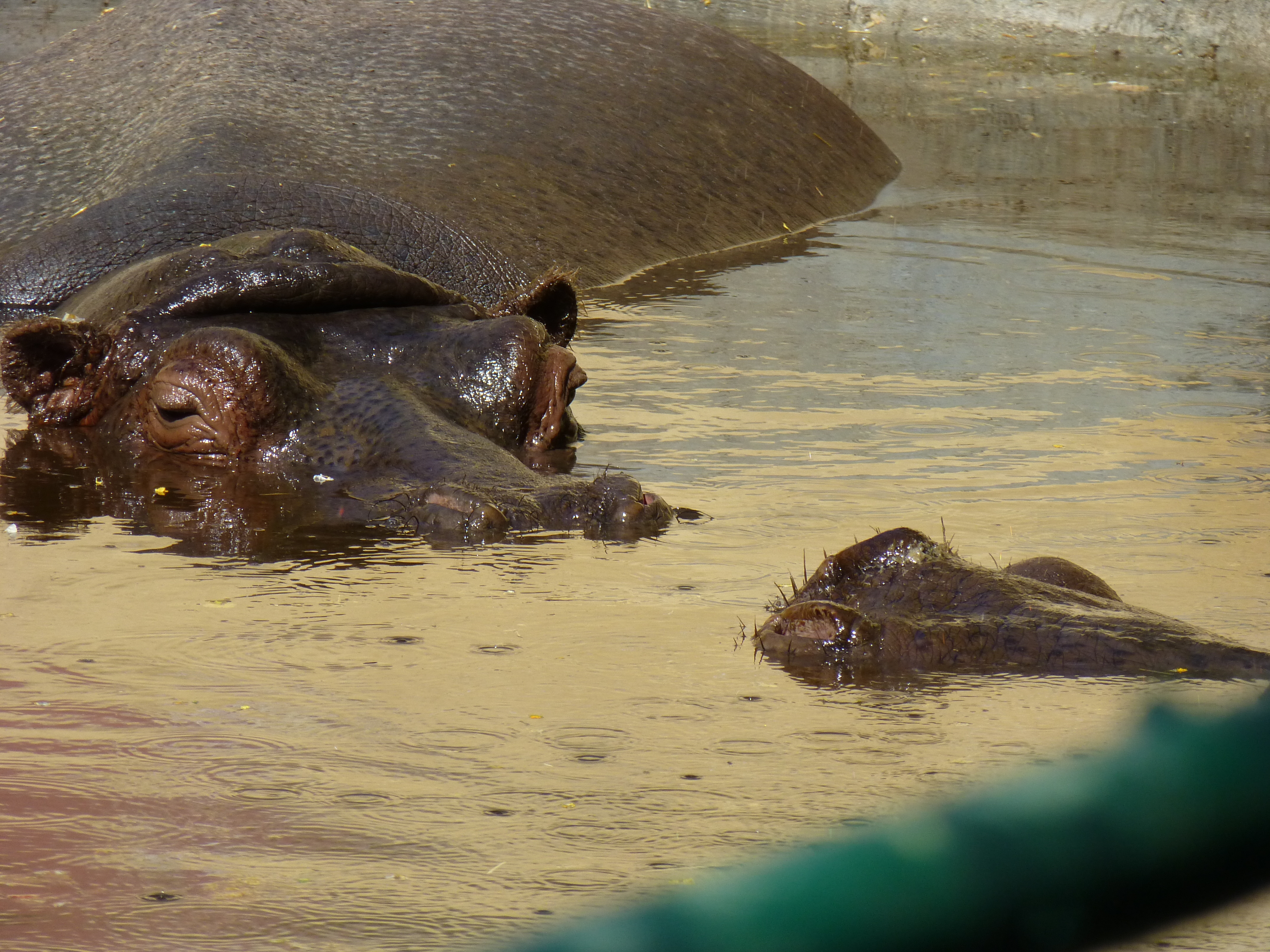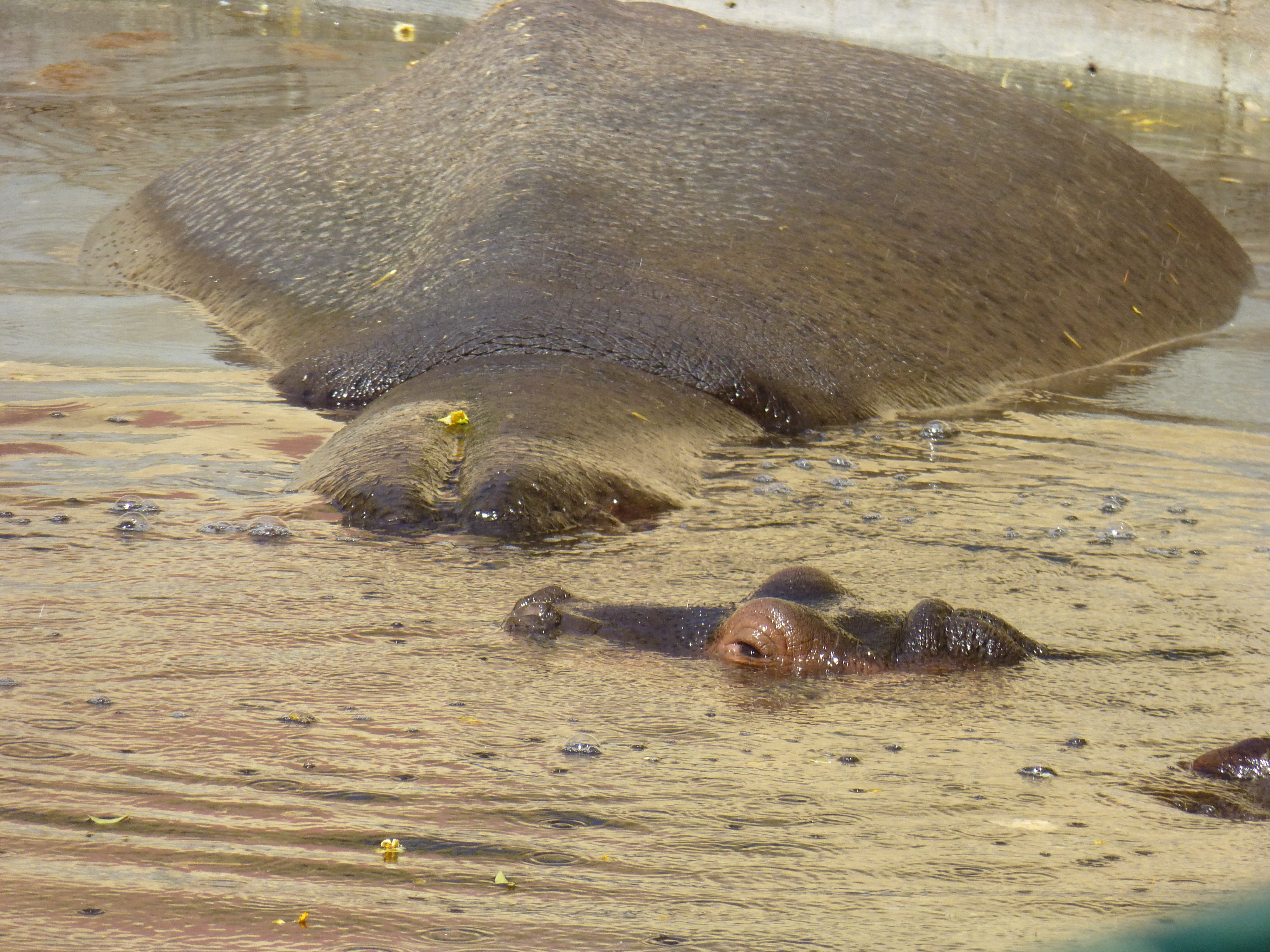 Full-size Hippos that were coolin’ it in their pool. It was 90 degerees today, but the humidity was only 22% – we would have sworn it was 80. It made that much difference.