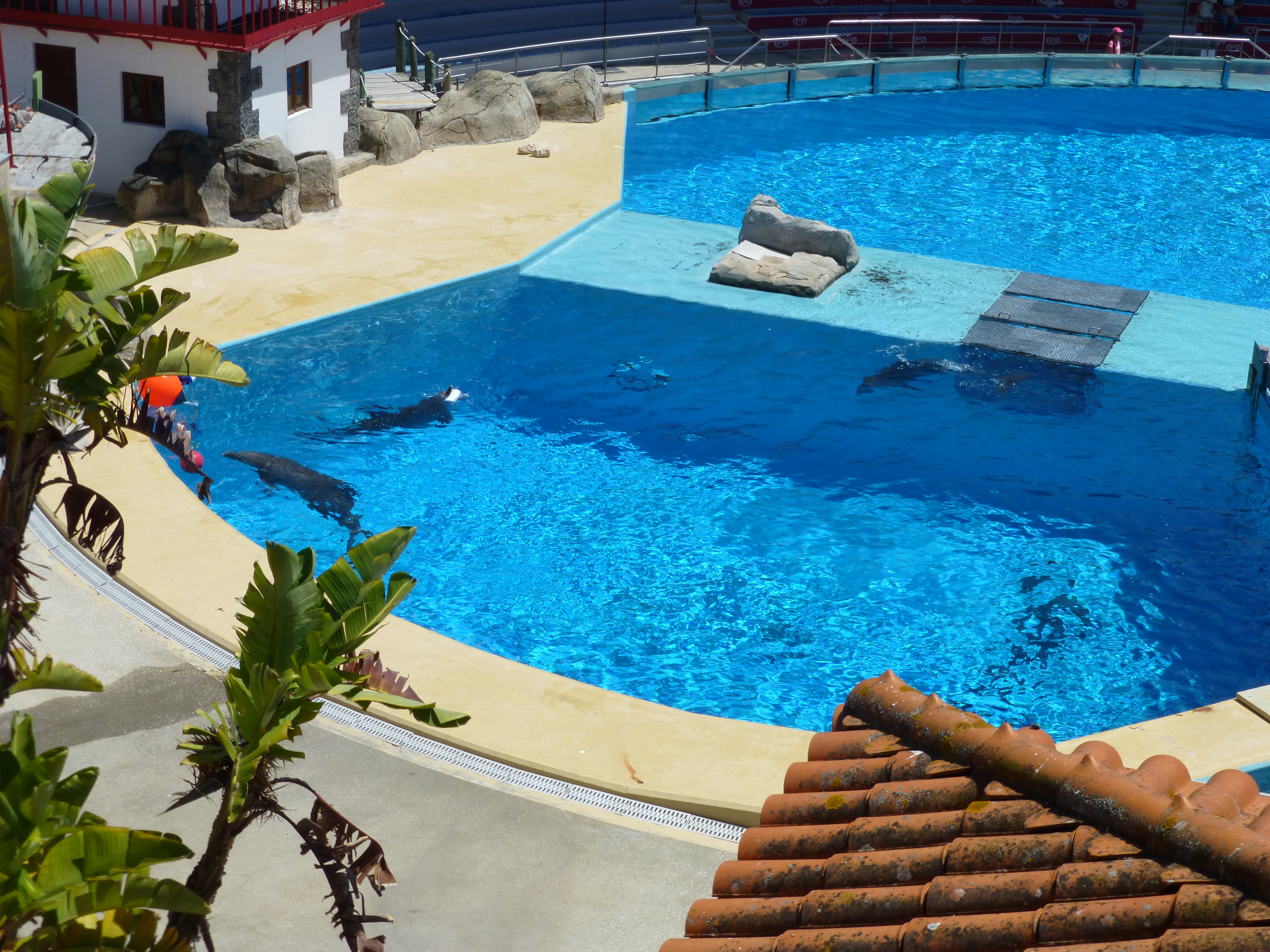 Today we journeyed to the Jardim Zoologico de Lisboa. (The zoo.) It was absolutely amazing. The grounds were almost like a park, and it was huge. We spent almost the entire day there and still didn’t see absolutely everything. In addition to the animal exhibits, there was a “Sea World”-type show with dolphins and a Sea Lion. It was quite good as well. The animal habitats were very spacious and realistic to their natural habitat. Here are some highlights: